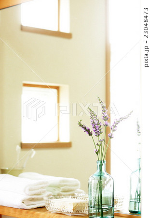 Shampoo, soap, aroma candles and other toiletry. Spring composition with copy space