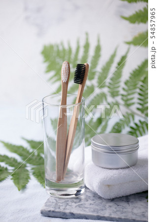 Bamboo Toothbrush with Green Grass Background. Zero waste