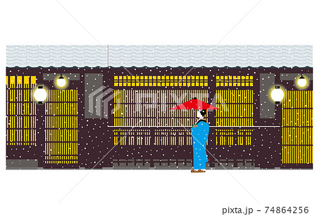日本老聯排別墅,雪和女孩