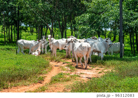 Banteng Cattle Grazing in Open Field with Natural Light, showcasing rural landscape and wildlife conservation in Indonesia, promoting ecotourism