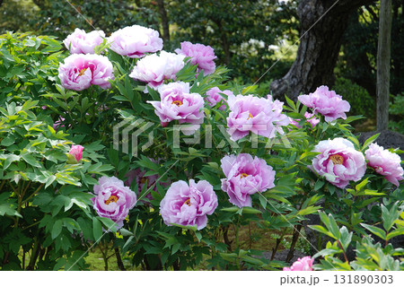三重縣員弁市農業公園初夏牡丹園中盛開的淡粉紅色牡丹