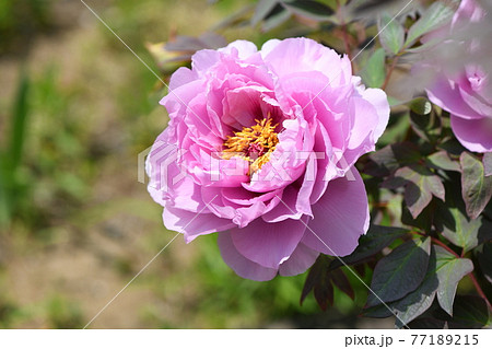 close up of a beautiful pink Paeonia suffruticosa flower in the garden
