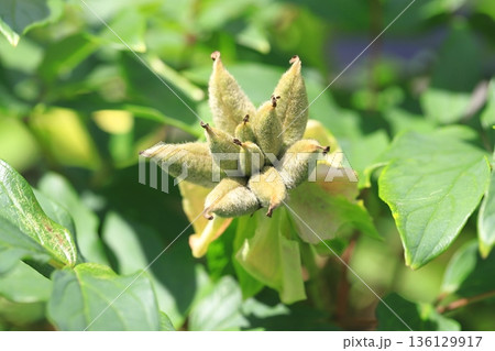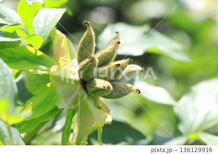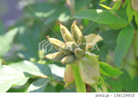 三重縣員弁市農業公園初夏牡丹園中盛開的白牡丹