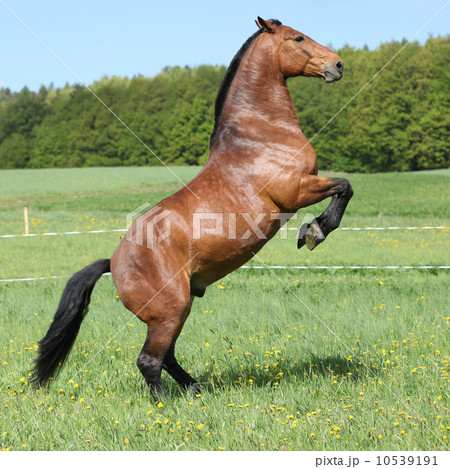 Gorgeous big brown horse prancing