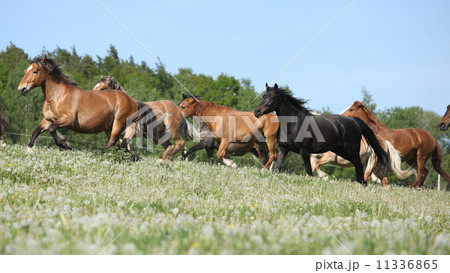 Beautiful herd of horses running together
