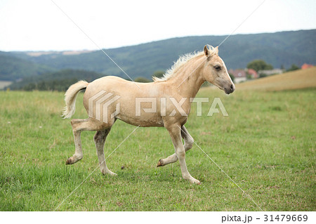 Amazing haflinger running on pasturage