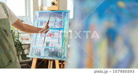 hand of artist with brush painting picture art, creativity, artistic and artwork, painting concept