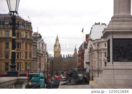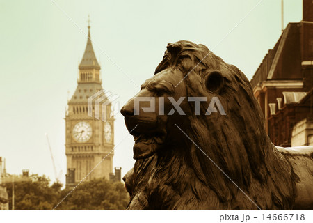 倫敦特拉法加廣場的獅子雕像,背景為大笨鐘