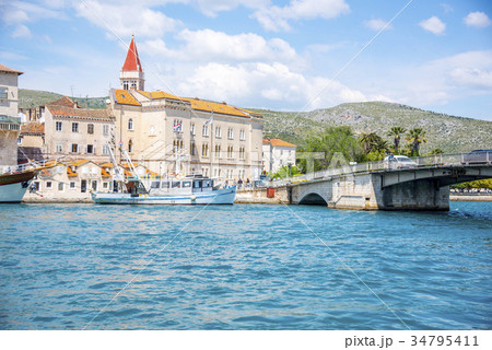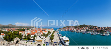 Historic town Trogir panorama view from Kamerlengo castle and fortress in Trogir, Croatia