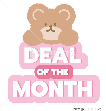 SWEET DEAL letters, teddy bear, heart on pink background for banner template, campaign, standee, wallpaper, backdrop, online shopping, promotion, discount sticker, brochure, Valentine, zoo, cartoon