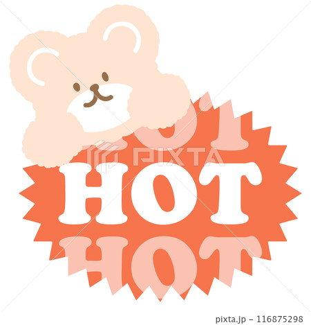 HOT sale badge with teddy bear for online shopping, marketing, promotion, sticker, banner, special price, discount, social media, template, campaign, mobile, web button, zoo, souvenir shop, ads