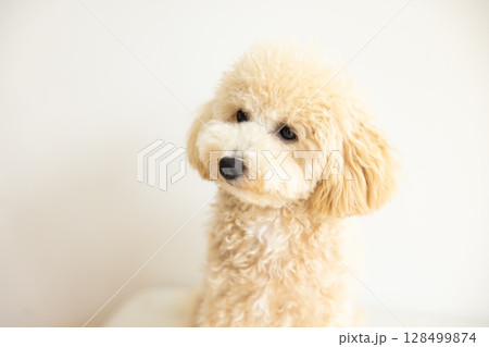 玩具貴賓犬和比熊貴賓犬與主人在客廳放鬆