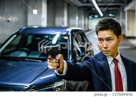一位年長的男警手握著從天而降的錢財黑手黨反社會黑公司犯罪集團賺錢形象