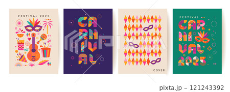 Modern poster collection for Brazil carnival in Rio de Janeiro. Trendy banner set with dancing people.