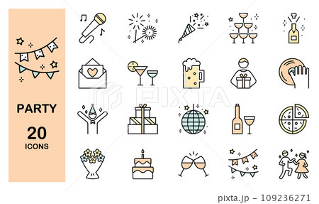 與生日派對、慶祝活動和聖誕派對相關的圖標集