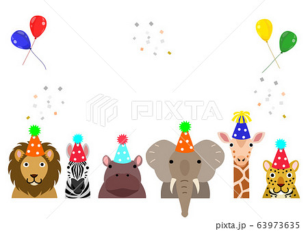 Blank card surrounded by colorful balloons, party hats, candles, and confetti. Concept of festive birthday celebrations