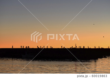 帶釣魚者的防波堤熙來/往/南防波堤,小樽,北海道