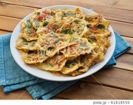 韓國傳統食品煎餅配料、麵粉、洋蔥、蘑菇、西葫蘆、韭菜