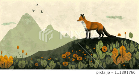 AI-generated content. Fox Overlooking Autumn Mountainscape
