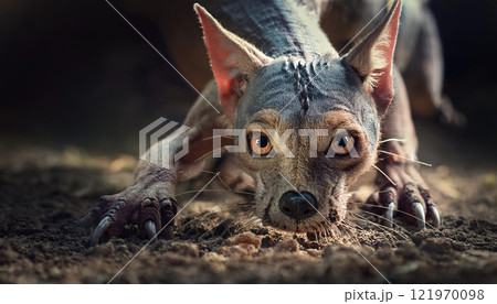 Image of white fox with red eyes on a clean background., Wildlife Animals.