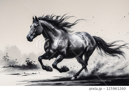 奔跑的駿馬插畫素材(水彩風格、馬、新年賀卡)