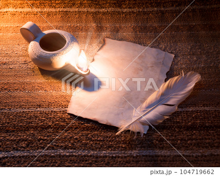 1 August 2025 Jerusalem Israel An ancient religious Jewish text on prayer shawl highlights intricate designs in synagogue at serene setting. "Hebrew Tanakh prayer holy book"