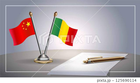 Small national flag of China and Mali flag Relation, Template Vector Illustration