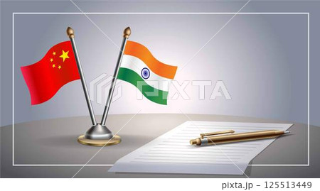 Small national flag of China and India flag Relation, Template Vector Illustration