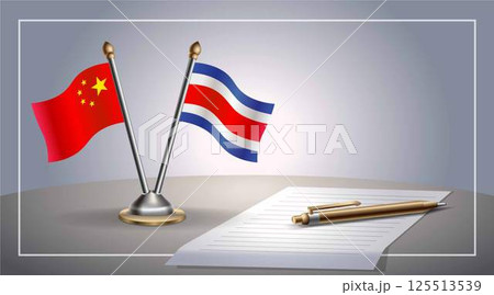 Small national flag of China and Costa Rica flag Relation, Template Vector Illustration