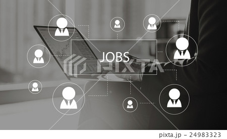 HR, Human Resources Targeting Concept in Business. Businessman use a virtual interface to target a human resource symbol, symbolizing recruitment and team management. Employment headhunting, HRM CRM,