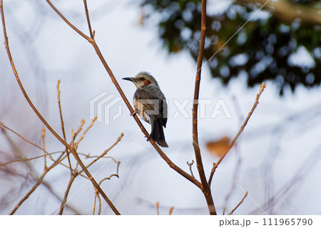 一隻鵯科的幼鳥,鵯家族,棲息在樹枝上。