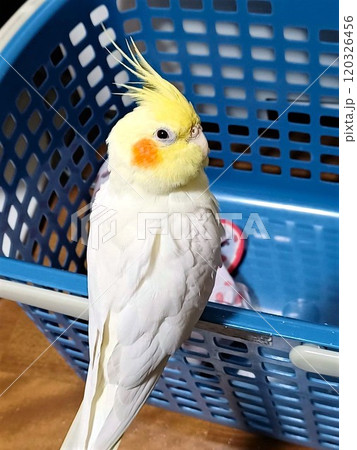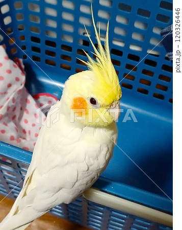 在洗衣籃棲息的鸚鵡