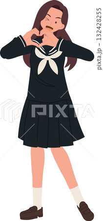 cute japanese student in ssailor uniform making hand heart gesture. kawaii japanese student