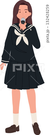 cute Japanese school girl wearing japanese school uniform holding a microphone during school talent show