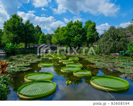 漂浮在水面上的亞馬遜睡蓮的葉子