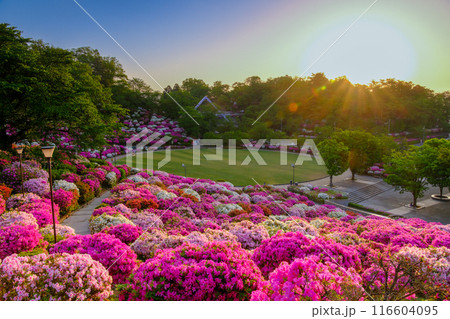 日輪寺杜鵑花公園“沐浴在夕陽下的杜鵑花景觀” 旅遊景點:日輪寺杜鵑花公園