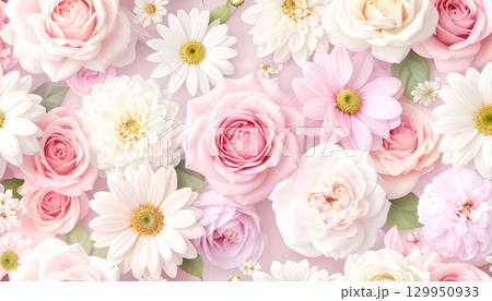 玫瑰和洋甘菊花瓣,白色背景上的春花裝飾