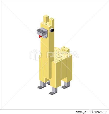 Lama in isometry made from cubes. Vector