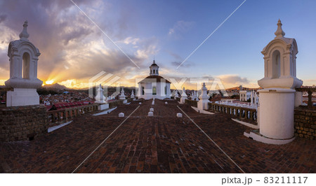 Rooftop of the Felipe Neri church at sunset in the city of Sucre, Bolivia.