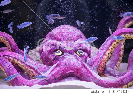 Underwater sculpture covered with corals at Zodiac dive site in Similan National Park, Thailand