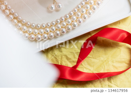 Elegant Pearl Necklace on Luxurious Satin Fabric