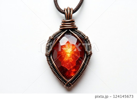 神奇的藝術品可以增強您的設計:銅色發光寶石護身符,單獨放置在乾淨的白色背景上