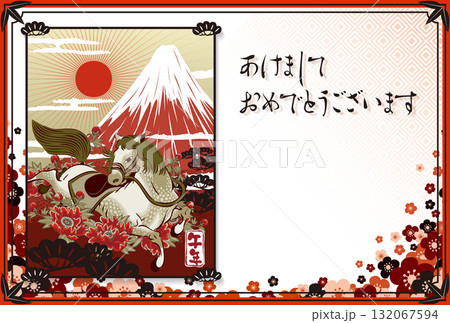 2026新年賀卡模板「日本現代設計」新年快樂英文註釋圖案