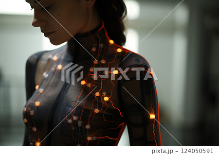 Sustainable fashion with flexible batteries and smart textiles. Solar panels and wearable technology for sustainable clothing design. Flexible battery power in clothing industry. Wearable innovation.