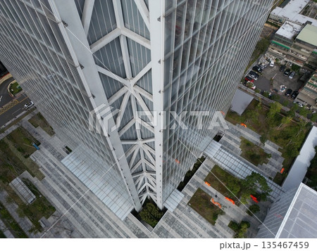 Aerial view of skyscraper and high-rise office