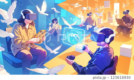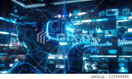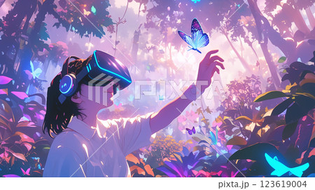 戴著VR眼鏡操作PC的女孩“AI生成圖像”