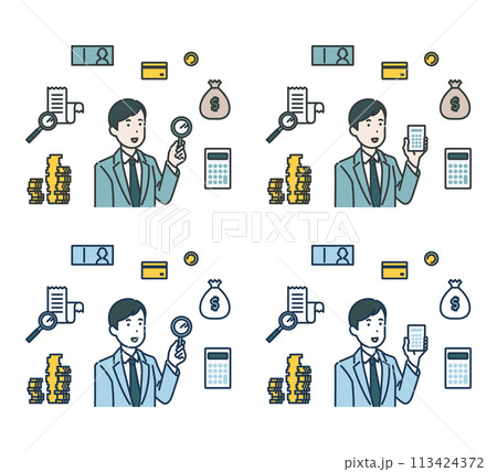 set of line icons related to finance, business, bank, money, economic, currency, exchange, investment.
