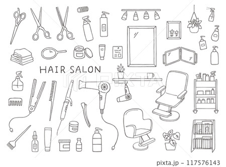 與美容院相關的手繪插圖集(單色)