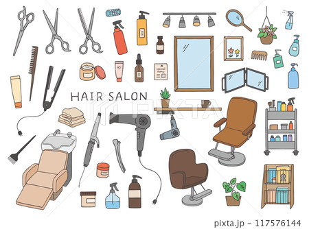 美容院美髮沙龍美容院設置圖標【手繪矢量】