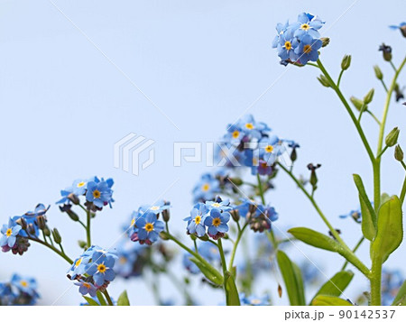 Trigonotis 花梗微距攝影的最小和淺藍色花和芽